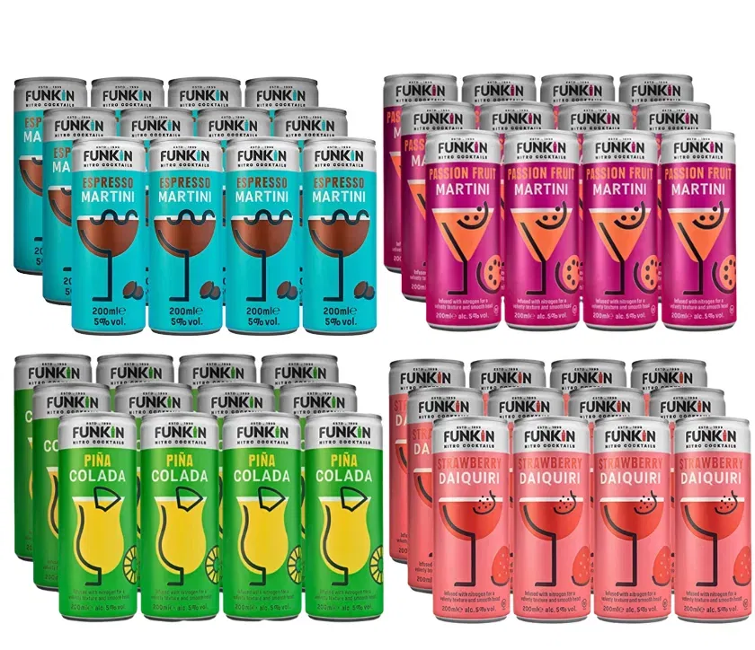 - Funkin Pina Colada, Strawberry Daiquiri, Passion Fruit Martini & Espresso Martini Pre-Mixed Cocktail Cans 200 ml (Case of 12 OF EACH FLAVOUR) | Premium Ready to Drink Cocktails – Bar Quality Drinks Made with Real Fruit and Nitro Infused