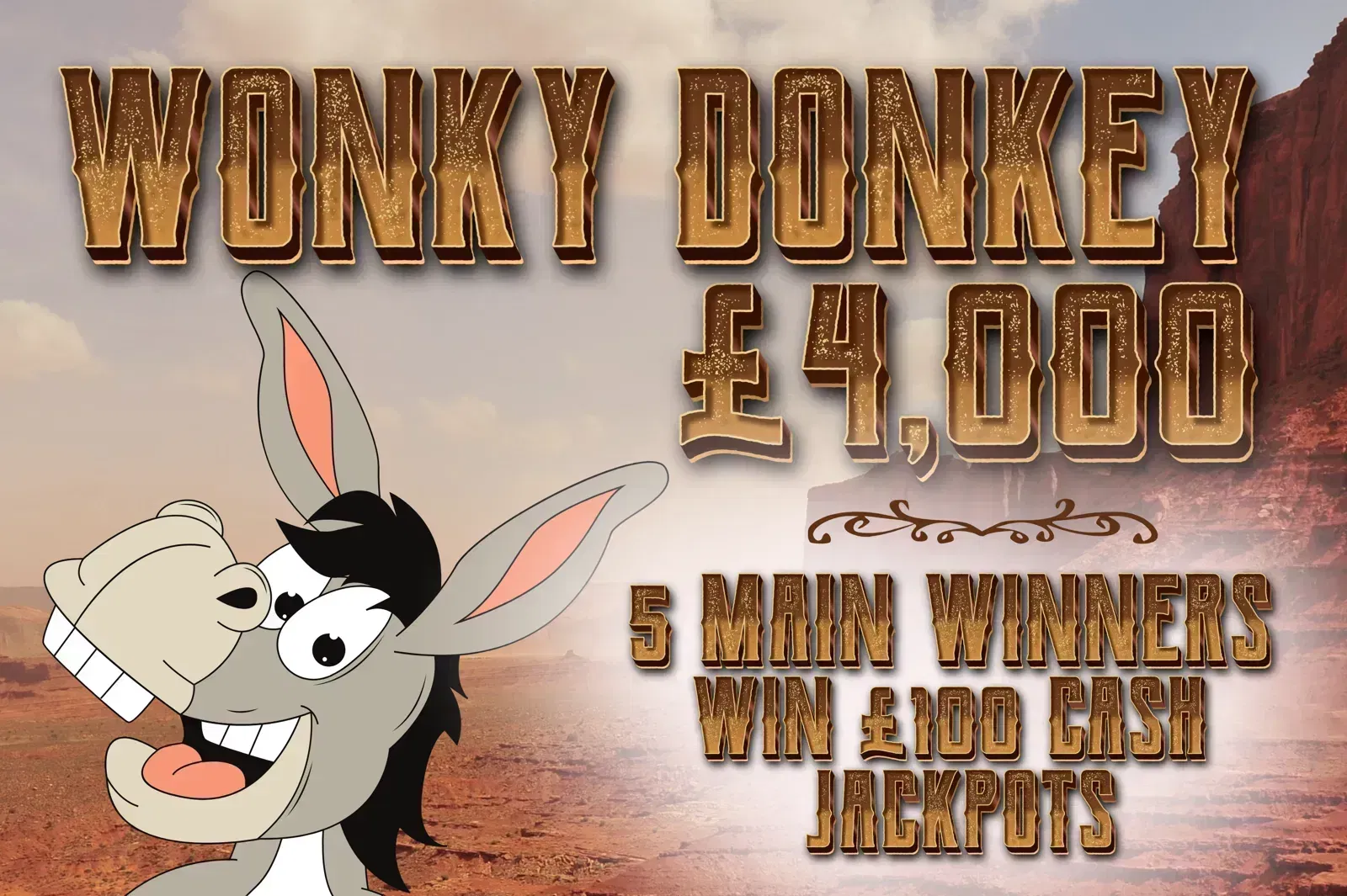 WONKY DONKEY – £4,000 INSTANT WINS & 5 MAIN WINNERS WIN £100 CASH JACKPOTS-AUTO WIN- 01/03