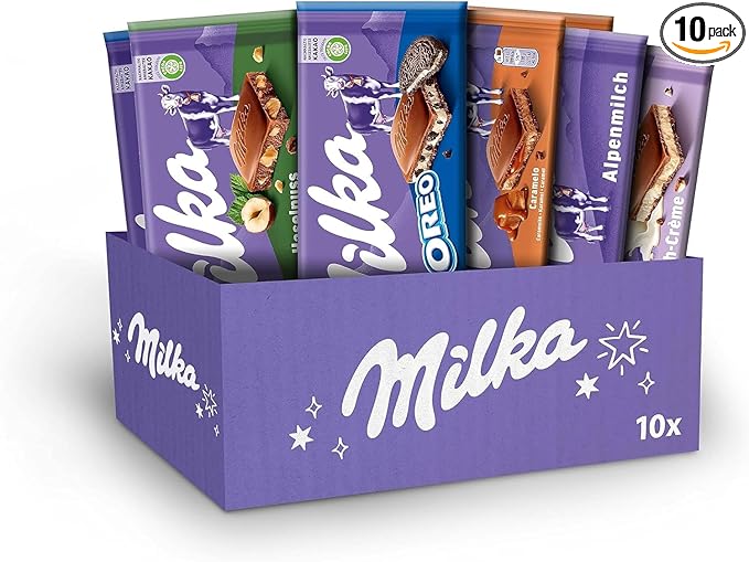 Milka Selection Gift Sharing Bulk Box, Assorted Chocolate Tablets, Milka OREO, Caramelo, Creme, Hazelnut and Alpine Chocolate Milk, Perfect for Gifting or Sharing, 100 g Bars (Pack of 10 Bars) AUTOWIN 02/12